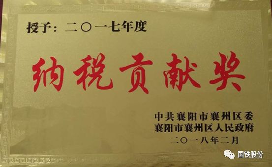 襄陽(yáng)國(guó)鐵榮獲2017年度“納稅貢獻(xiàn)獎(jiǎng)”