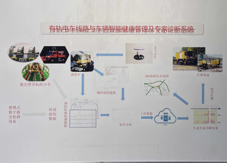 應(yīng)用高精度北斗導(dǎo)航時空信息、開發(fā)出具備自主知識產(chǎn)權(quán)的智能檢測裝備,源自不同的智能檢測裝備的數(shù)據(jù)經(jīng)過數(shù)據(jù)中心整理、歸并、解算,生成過程性分析數(shù)據(jù)和直觀的判斷結(jié)果,同時所有過程和結(jié)果數(shù)據(jù)上傳到云端,最終對線路狀況提供運(yùn)營維保的建議和意見