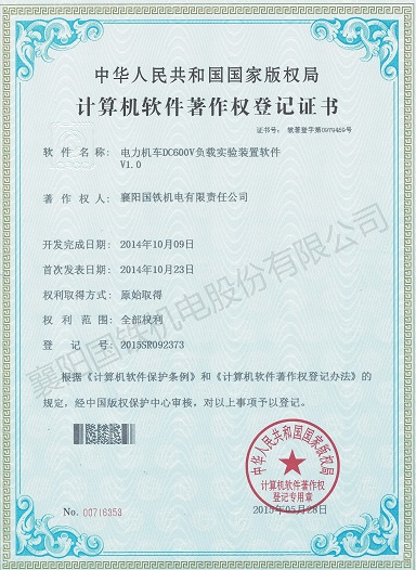 電力機(jī)車(chē)DC600V負(fù)載實(shí)驗(yàn)裝置軟件(軟件著作權(quán)證書(shū))